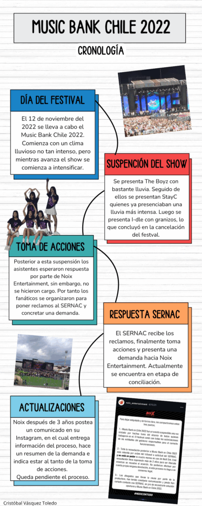 El 12 de noviembre se realizó el Music Bank en Chile, que debido a las malas condiciones climáticas previamente anunciadas debió suspenderse. Los asistentes del evento se encuentran a la espera de una respuesta por parte de la productora Noix Entertainment.